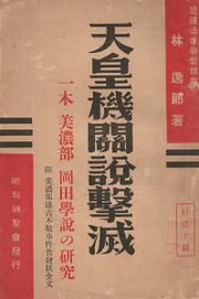 | 2022年3月12日 (土) 21:36 | 天皇機関説撃滅の表紙.jpg (ファイル) | 107キロバイト | IHiroaki | 林逸郎『天皇機関説撃滅』の表紙 | 1 | |