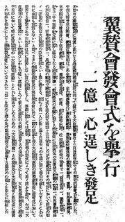 | 2022年5月10日 (火) 03:44 | 東京朝日新聞1940年12月11日夕刊(12日付)p2.jpg (ファイル) | 400キロバイト | IHiroaki | 東京朝日新聞 昭和15年(1940年)12月11日夕刊(12日付)p2 大政翼賛会の東京府支部の結成式が軍人会館で開かれたことを伝えている。 | 1 | |