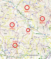 | 2023年11月28日 (火) 19:31 | 穴太と四つの山の位置図.jpg (ファイル) | 450キロバイト | IHiroaki | {{rm|37|2|葱節}}の「西は'''半国'''東は'''愛宕''' 南'''妙見'''北'''帝釈'''の 山の屏風を引きまはし 中の'''穴太'''で牛を飼ふ」という歌の、四つの山と穴太との位置。 {{デフォルトソート:… | 1 | |