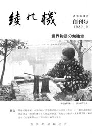 | 2023年11月29日 (水) 04:33 | 綾の機創刊号の表紙.jpg (ファイル) | 121キロバイト | IHiroaki | 「綾の機」創刊号の表紙。昭和57年(1982年)9月創刊。 {{デフォルトソート:あやのはた}} Category:機関紙誌 | 1 | |