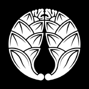 [[ファイル:抱き茗荷.png|thumb| | [[ファイル:抱き茗荷.png|thumb|180px|出口家のもともとの家紋の「抱き茗荷」]] | ||