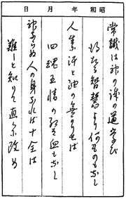 | 2023年11月20日 (月) 01:18 | 出口王仁三郎の歌日記原稿.jpg (ファイル) | 135キロバイト | IHiroaki | 出口王仁三郎の歌日記の原稿。昭和4年3月1日。 出典:『大活字 大本の道』(平成13年12月8日第一刷、天声社)巻頭口絵 説明文「著者の歌日記(昭和四年三月一日 天恩郷高天閣… | 1 | |