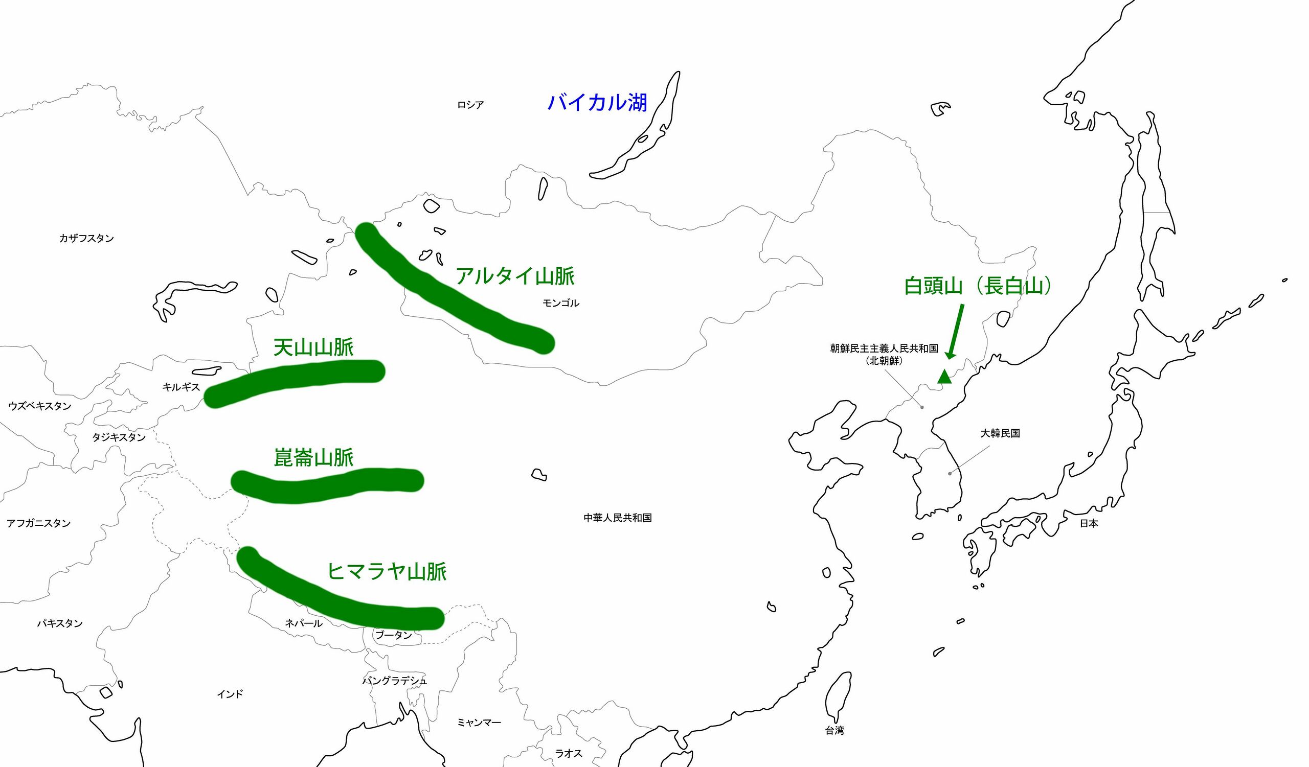 出口王仁三郎霊界物語に関係する東アジアの地理を記した地図。